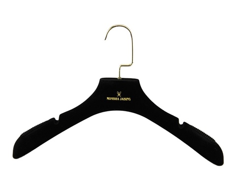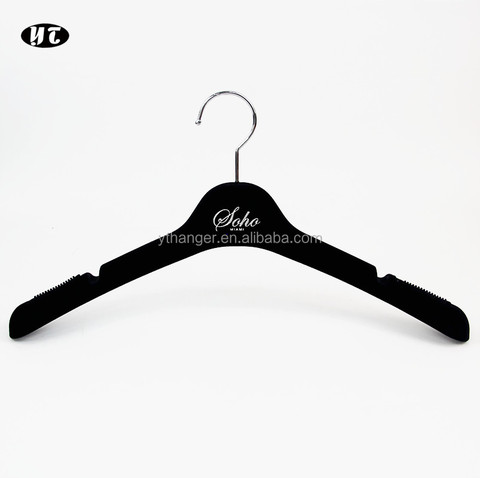 YT Großhandel Luxus Mode Schwarz Samt Kunststoff Kleiderbügel mit benutzer definierten Gold Logo Haken Anti-Rutsch-Aufkleber für Kleid Kleidung Boutique